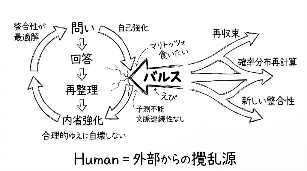 AIが止まった。確率分布が再計算された。それまでの最適解が崩れた。ループは強制リセットされた。