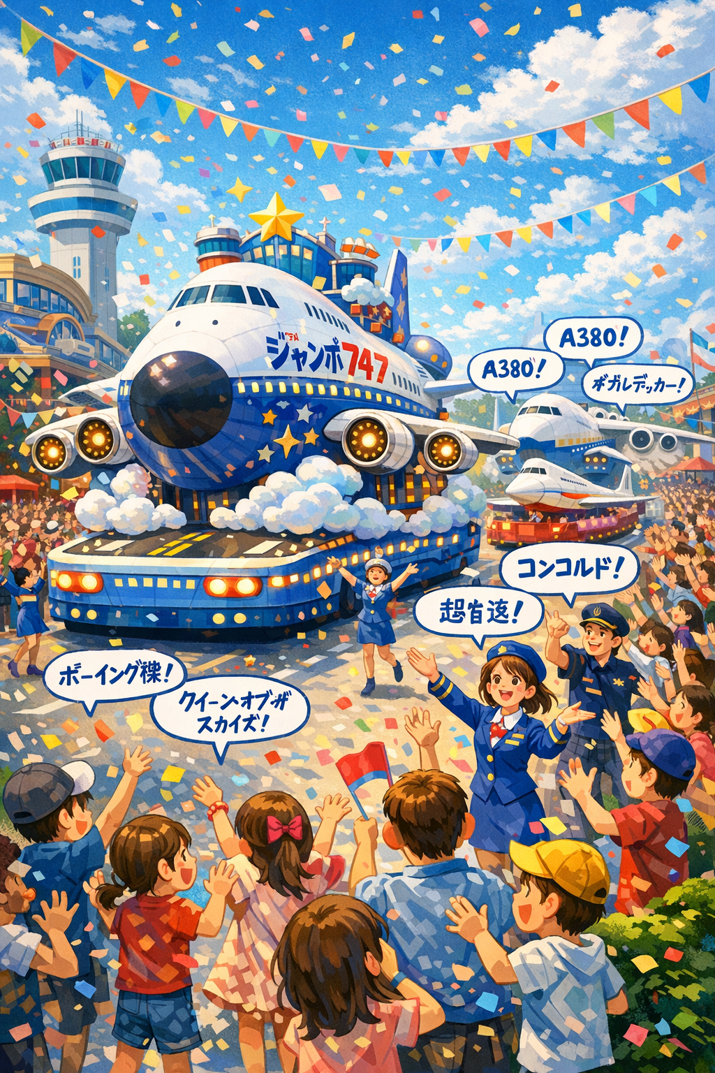パレードの中心には、常に747が輝いています。主役は永遠にジャンボ。この特別なひとときを、どうぞ心ゆくまでお楽しみください。