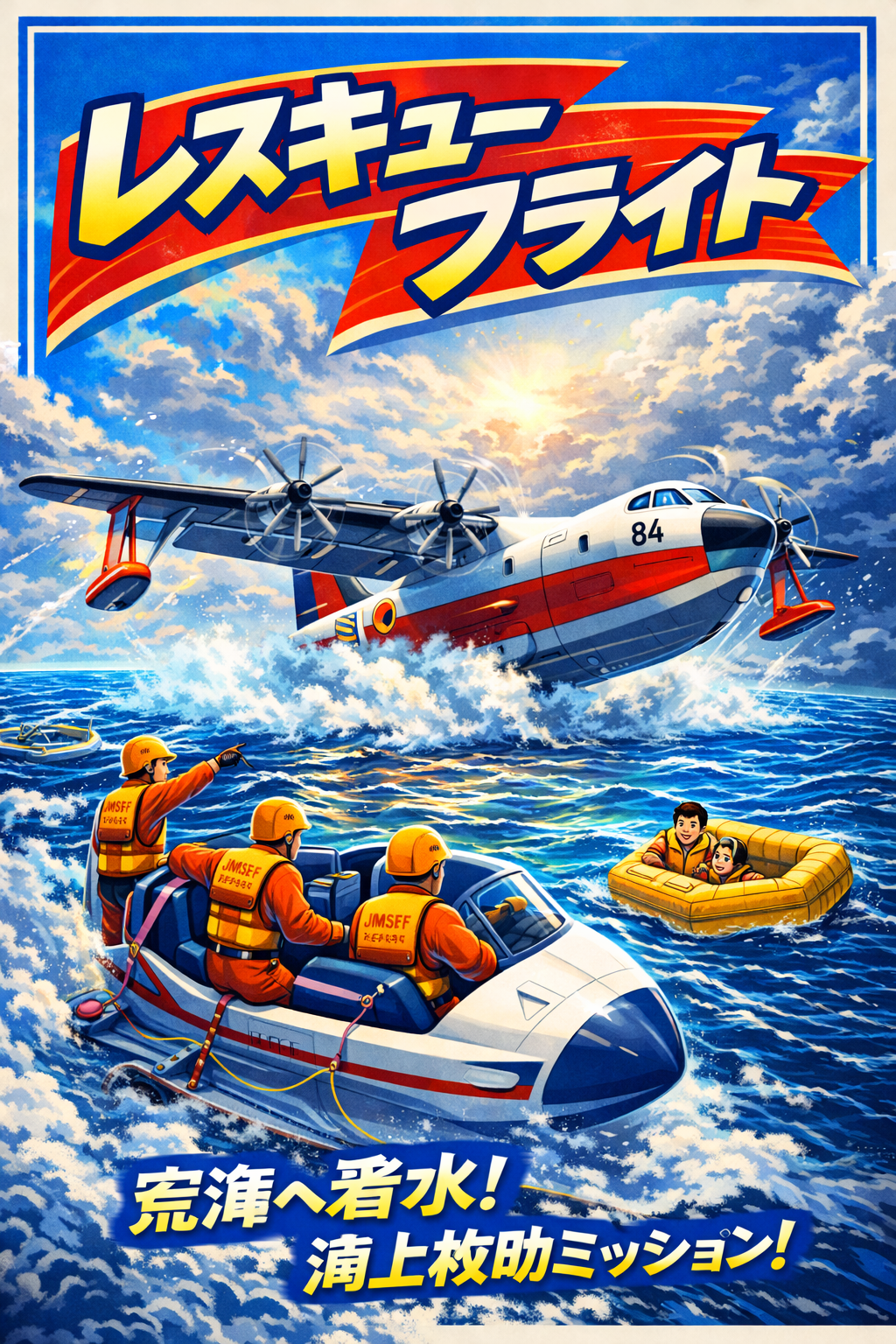 レスキューフライトは、US-2をテーマにしたライドです。荒れ狂う海への着水、救助対象への接近、そして救出の達成感。海上航空ならではの、忘れられない冒険が始まります。