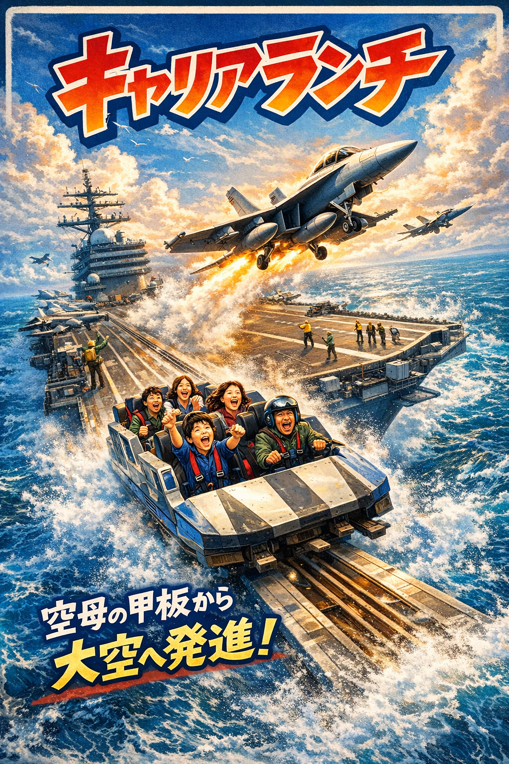 キャリアランチでは、空母からの艦載機発艦という、特別な体験をご用意しています。カタパルトによる発進の加速感、艦隊上空フライト、そして着艦の緊張の瞬間まで、一連のミッションを体験いただけます。