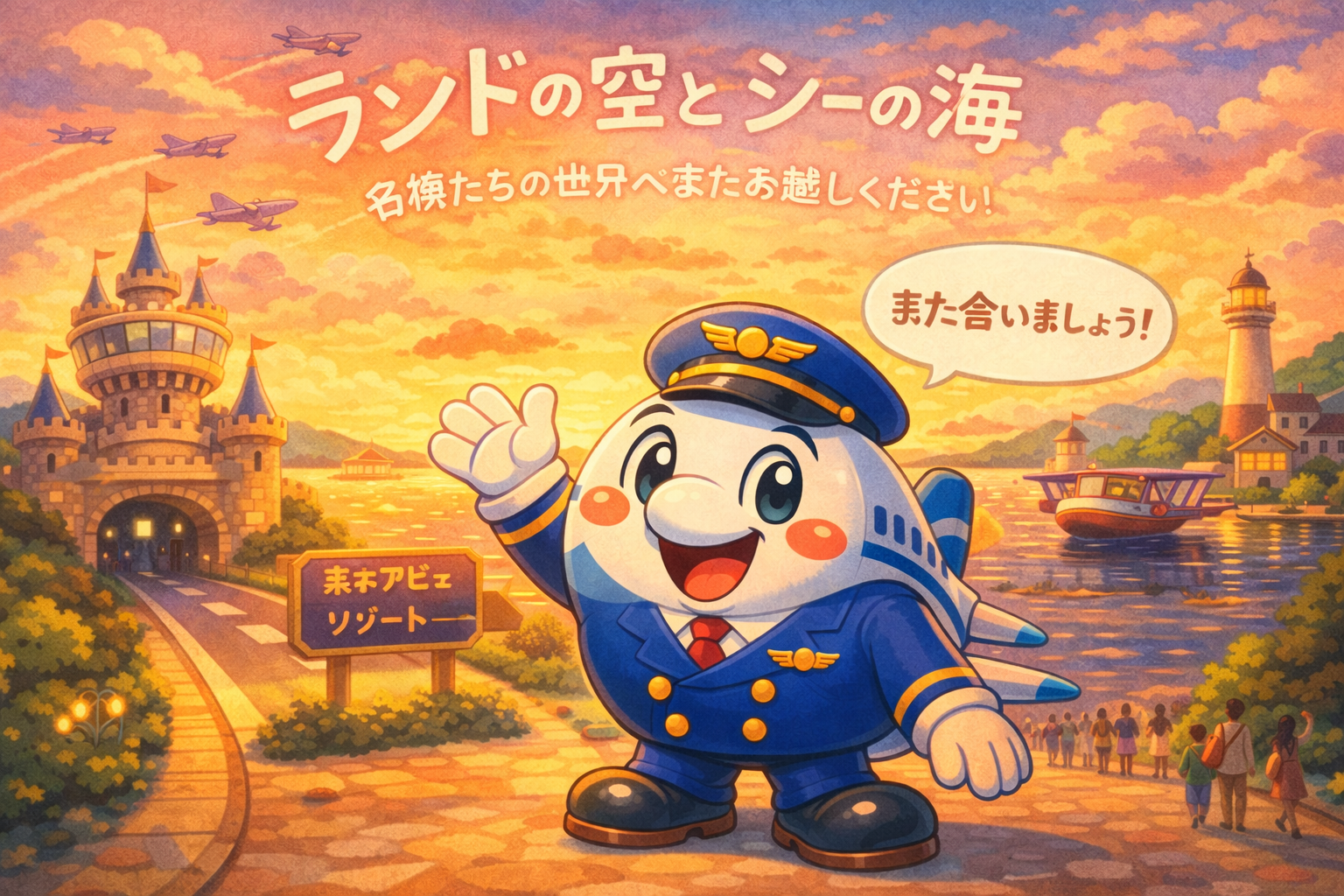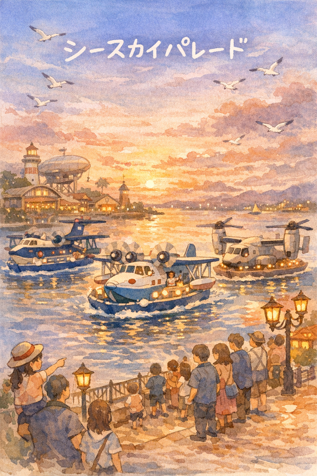 ジャンボリ747パレードの高揚感とは異なる、静かで深いひとときをお届けするシースカイパレード。海風のサウンド、霧笛のような音楽、そして夕暮れの光に包まれながら、ゲストの皆さまはきっと忘れられない特別な瞬間を過ごされることでしょう。